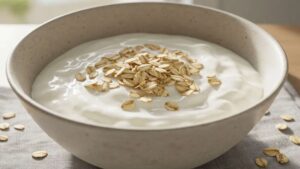 El yogur natural es rico en proteínas, calcio y probióticos, bacterias beneficiosas que ayudan a mantener una buena salud intestinal.
